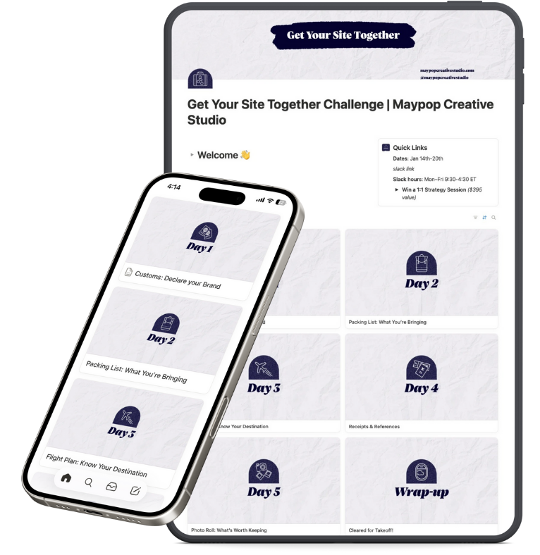 Get Your Site Together is a focused 5-day challenge that walks you through the essential website project prep work you need BEFORE you start building.